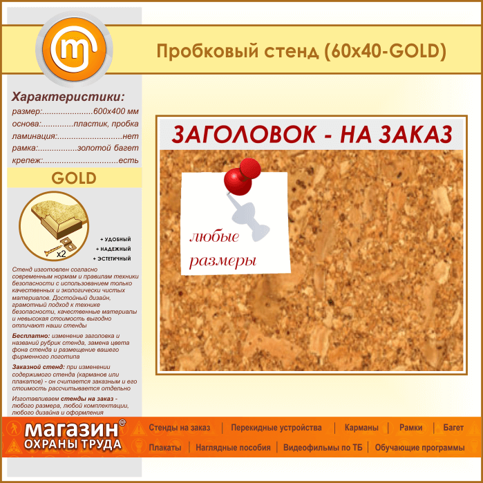 Пробковая доска с заголовком, 60х40 см (IN-06-GOLD) в Щёлково купить