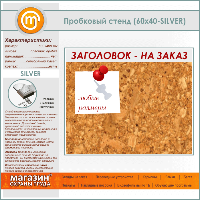Пробковая доска с заголовком, 60х40 см (IN-06-SILVER) в Щёлково купить
