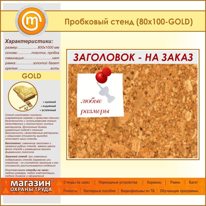 Пробковая доска с заголовком, 100х80 см (IN-06-GOLD) в Щёлково купить