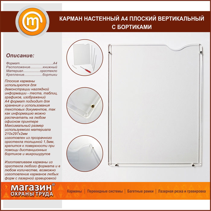 Карман настенный А4 плоский вертикальный с бортиками в Щёлково купить