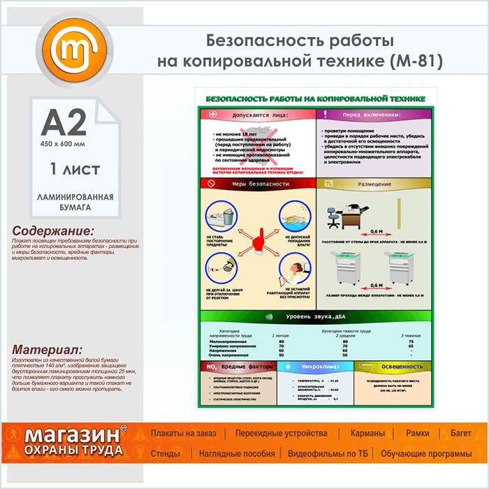 Плакат «Безопасность работы на копировальной технике» (М-81, ламинированная бумага, А2, 1 лист) в Щёлково купить