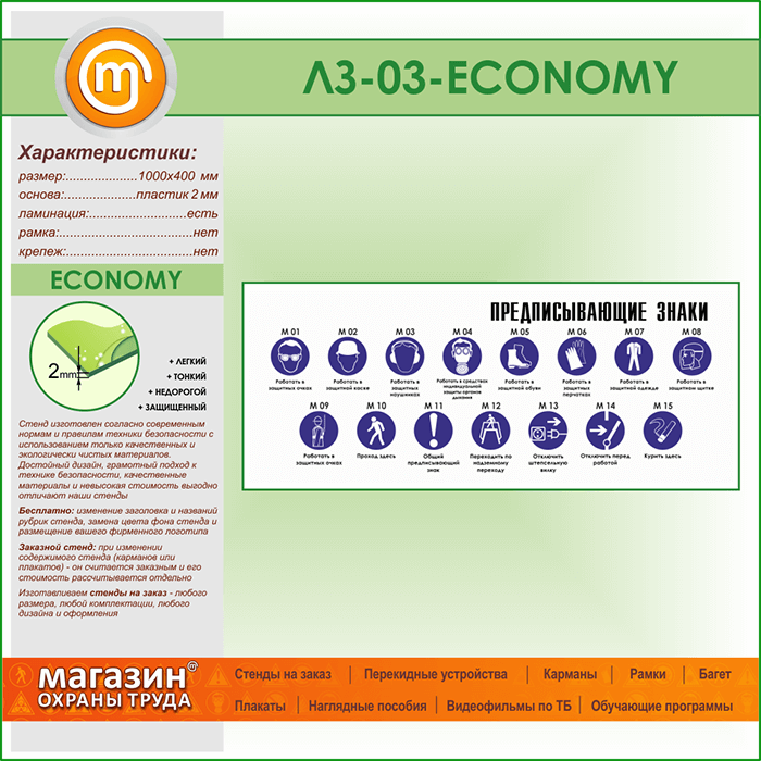 Стенд «Предписывающие знаки» (LZ-03-ECONOMY) в Щёлково купить