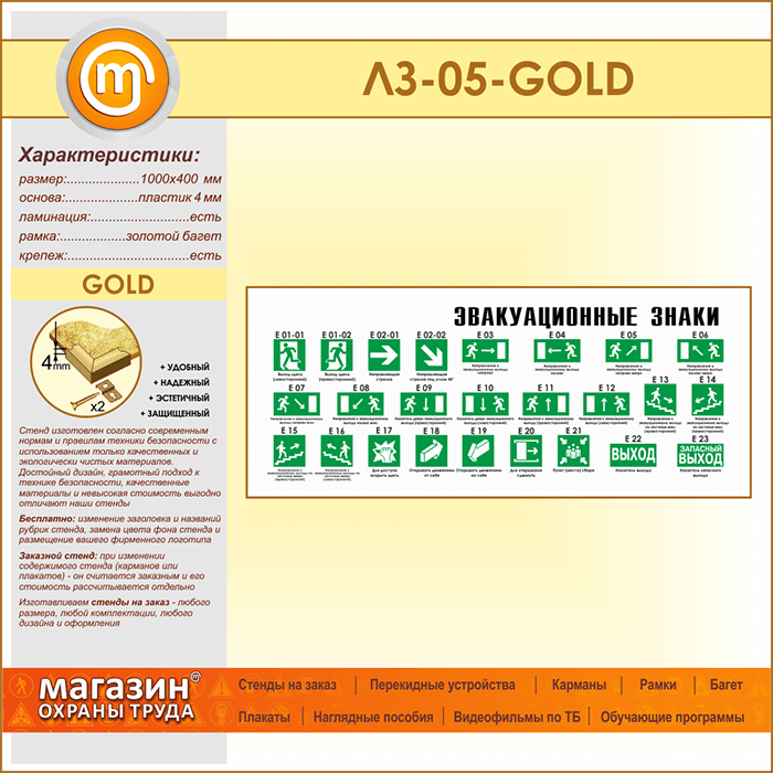Стенд «Эвакуационные знаки» (LZ-05-GOLD) в Щёлково купить