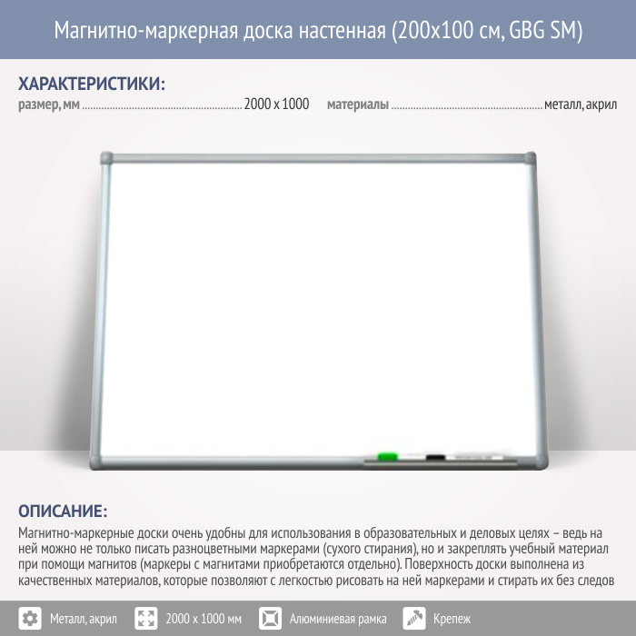 Магнитно-маркерная доска настенная (200x100 см, GBG SM) в Щёлково купить