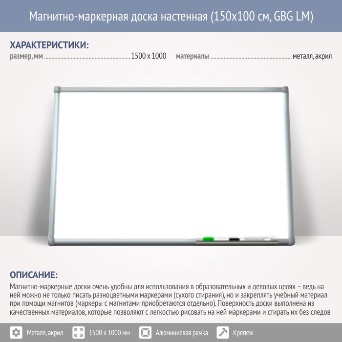 Магнитно-маркерная доска настенная (150x100 см, GBG LM) в Щёлково купить