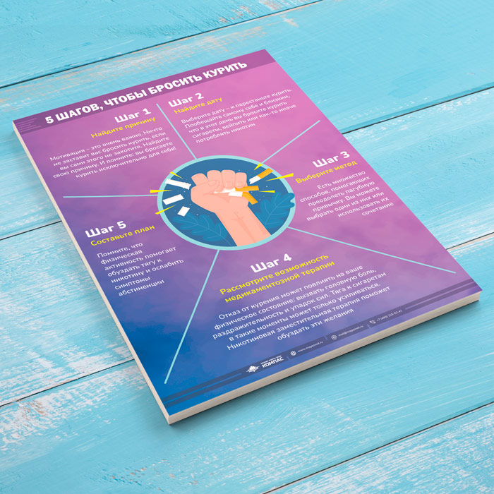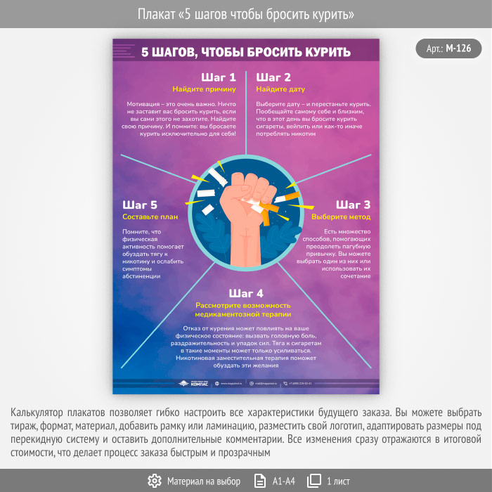 Плакат «5 шагов чтобы бросить курить» (М-126, 1 лист) в Щёлково купить