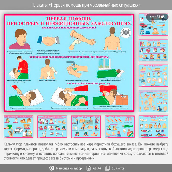Плакаты «Первая помощь при чрезвычайных ситуациях» (ВЗ-05, 10 листов) в Щёлково купить