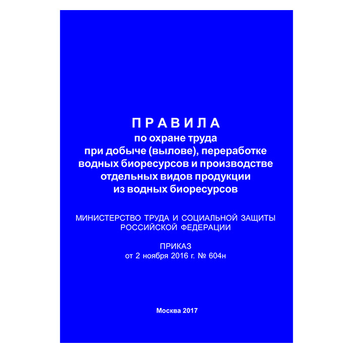 Правила по охране труда при добыче (вылове), переработке водных биоресурсов и производстве отдельных видов продукции из водных биоресурсов (Приказ Минтруда РФ от 02.11.2016 № 604н) (ЛАП-22) в Щёлково купить