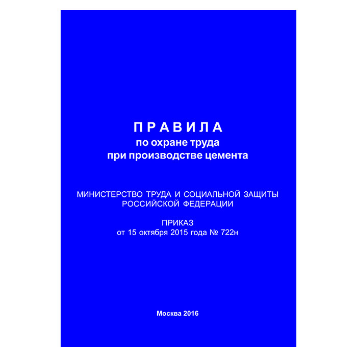 Правила по охране труда при производстве цемента (Приказ Минтруда РФ от 15.10.2015 № 722н) (ЛАП-28) в Щёлково купить