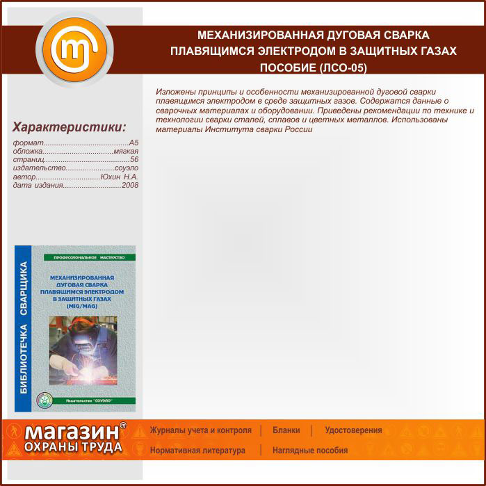Механизированная дуговая сварка плавящимся электродом в защитных газах – пособие (ЛСО-05) в Щёлково купить