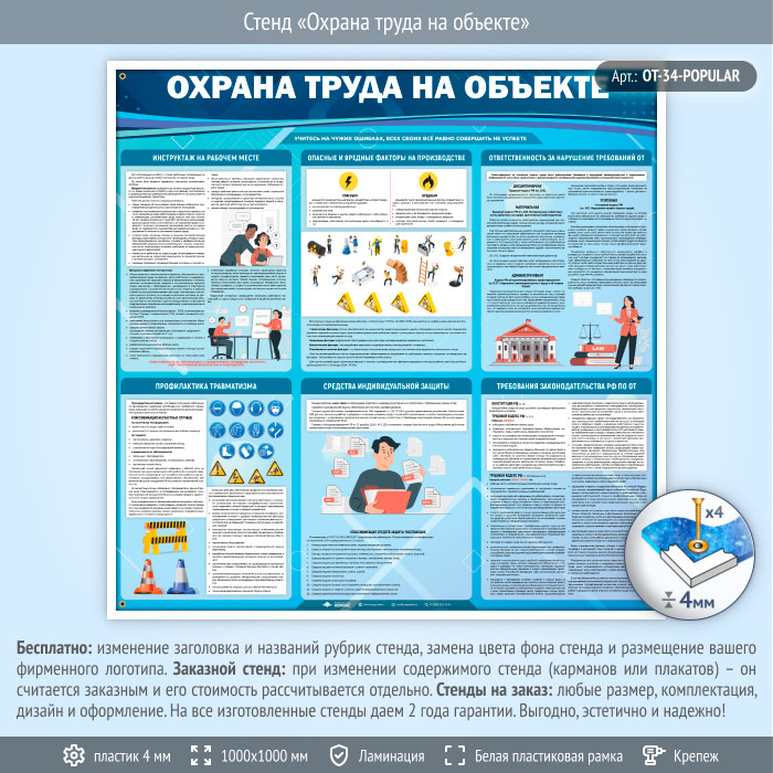 Стенд «Охрана труда на объекте» (OT-34-POPULAR) в Щёлково купить