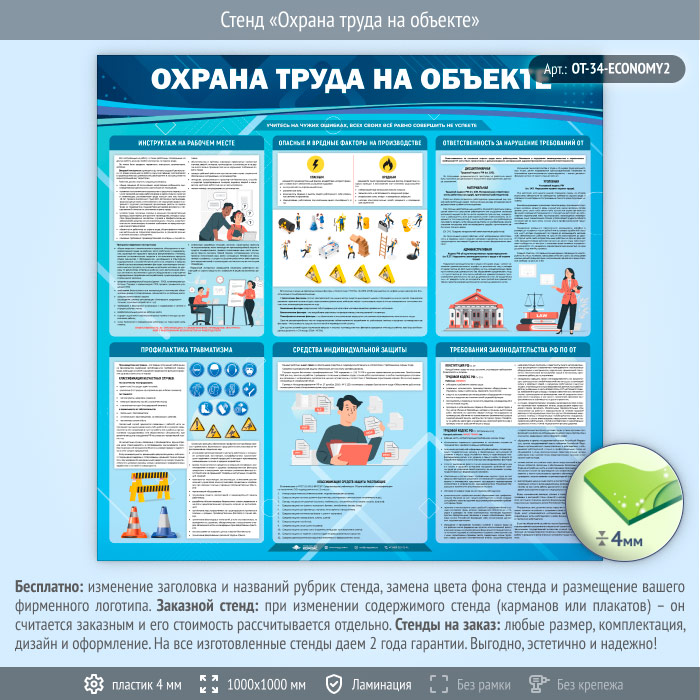 Стенд «Охрана труда на объекте» (OT-34-ECONOMY2) в Щёлково купить