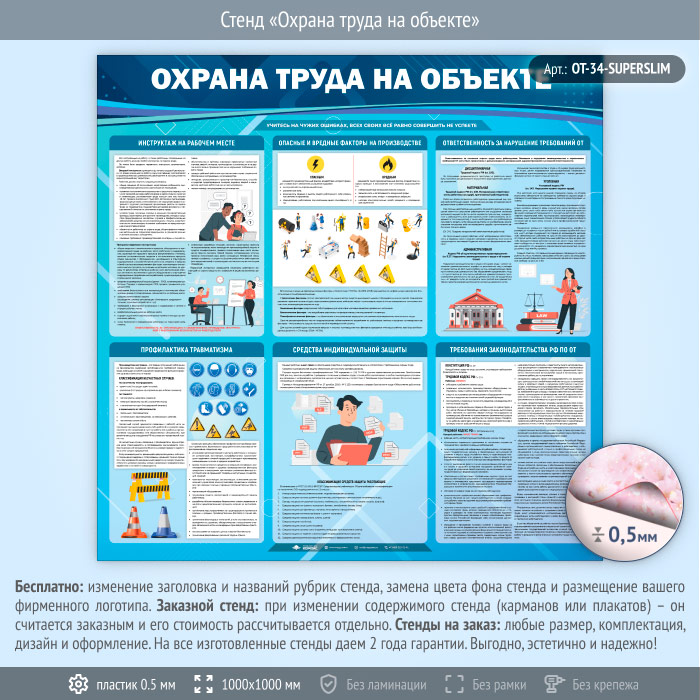 Стенд «Охрана труда на объекте» (OT-34-SUPERSLIM) в Щёлково купить