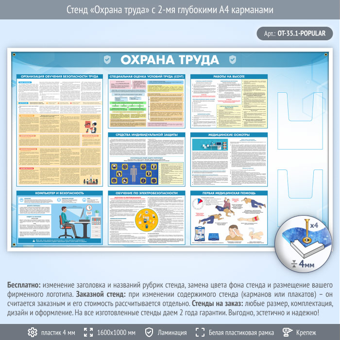 Стенд «Охрана труда» с 2-мя глубокими А4 карманами (OT-35.1-POPULAR) в Щёлково купить
