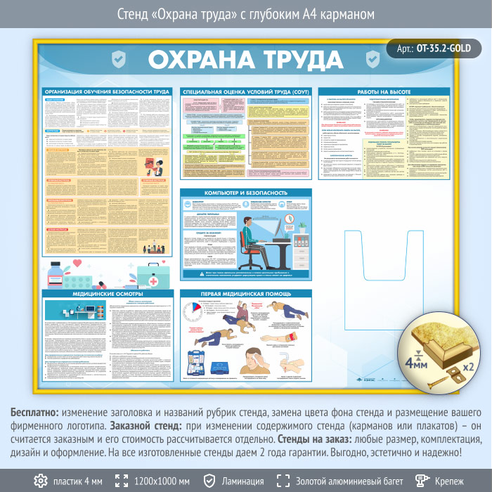 Стенд «Охрана труда» с глубоким А4 карманом (OT-35.2-GOLD) в Щёлково купить