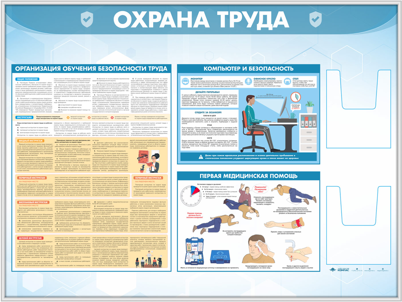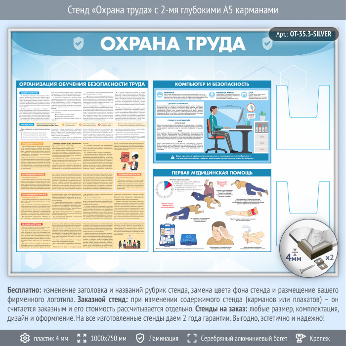 Стенд «Охрана труда» с 2-мя глубокими А5 карманами (OT-35.3-SILVER) в Щёлково купить