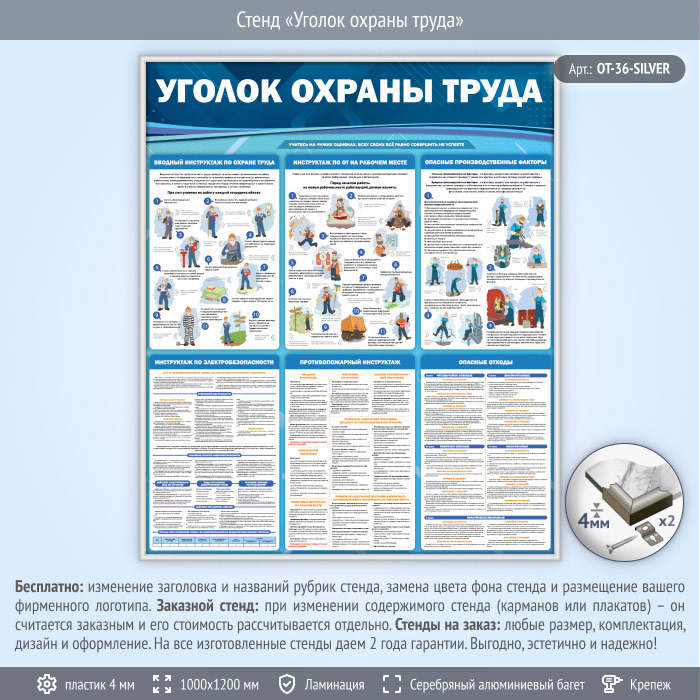 Стенд «Уголок охраны труда» (OT-36-SILVER) в Щёлково купить