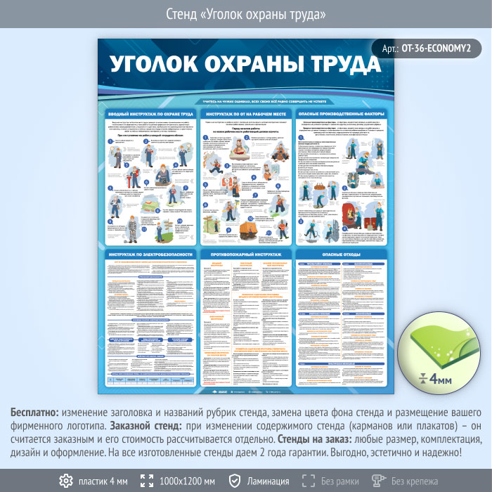 Стенд «Уголок охраны труда» (OT-36-ECONOMY2) в Щёлково купить