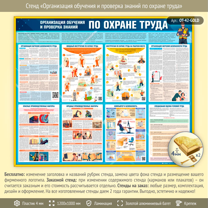 Стенд «Организация обучения и проверка знаний по охране труда» (OT-42-GOLD) в Щёлково купить