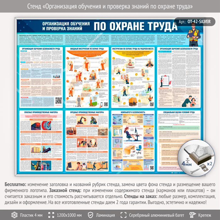 Стенд «Организация обучения и проверка знаний по охране труда» (OT-42-SILVER) в Щёлково купить