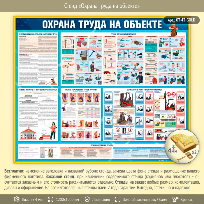 Стенд «Охрана труда на объекте» (OT-43-GOLD) в Щёлково купить