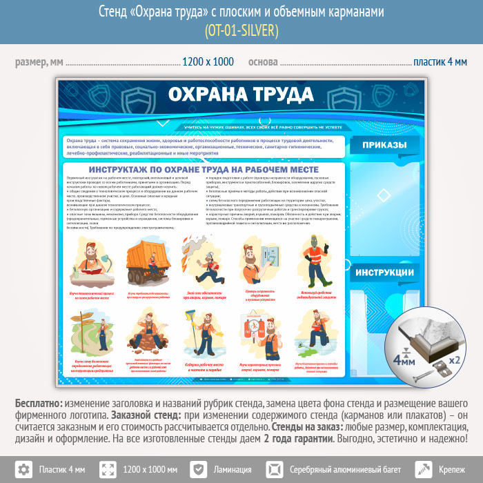 Стенд «Охрана труда» с плоским и объемным карманами (OT-01-SILVER) в Щёлково купить