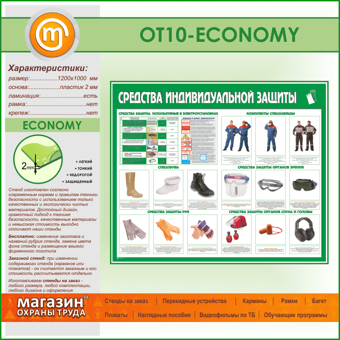 Стенд «Средства индивидуальной защиты» (OT-10-ECONOMY) в Щёлково купить