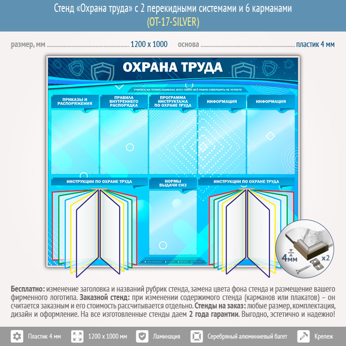 Стенд «Охрана труда» с 2 перекидными системами и 6 карманами (OT-17-SILVER) в Щёлково купить