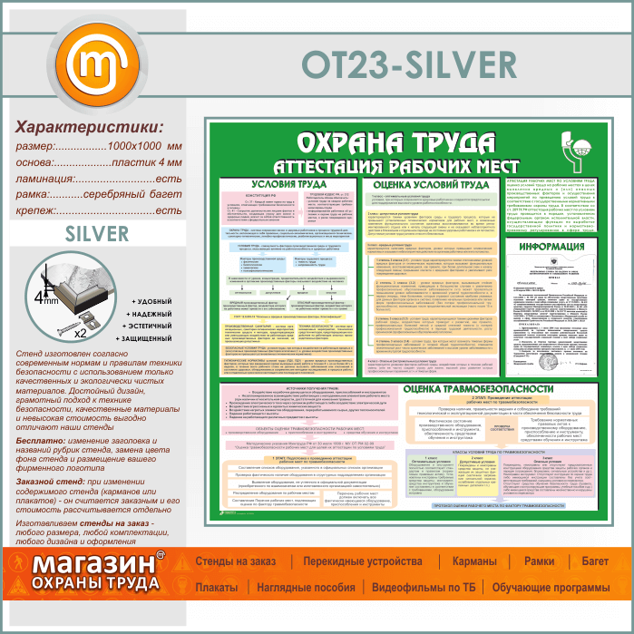 Стенд «Охрана труда. Аттестация рабочих мест» с карманом (OT-23-SILVER) в Щёлково купить