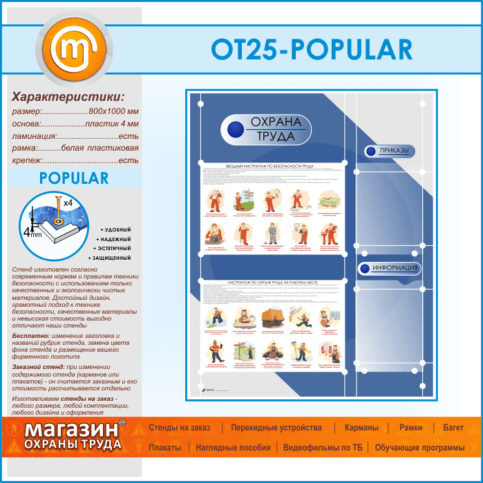 Стенд «Охрана труда» с 2 плоскими карманами (OT-25-POPULAR) в Щёлково купить