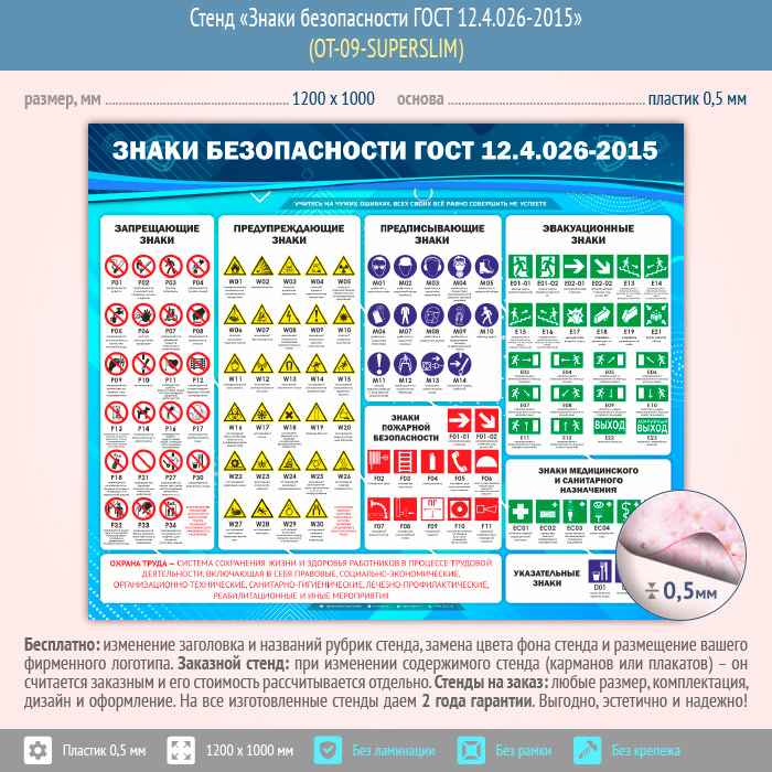 Стенд «Знаки безопасности ГОСТ 12.4.026-2015» (OT-09-SUPERSLIM) в Щёлково купить