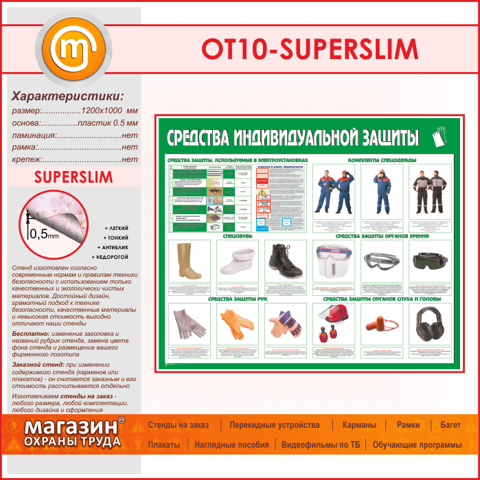 Стенд «Средства индивидуальной защиты» (OT-10-SUPERSLIM) в Щёлково купить