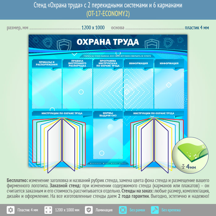 Стенд «Охрана труда» с 2 перекидными системами и 6 карманами (OT-17-ECONOMY2) в Щёлково купить