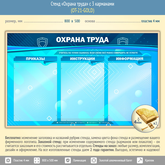 Стенд «Охрана труда» с 3 карманами (OT-21-GOLD) в Щёлково купить
