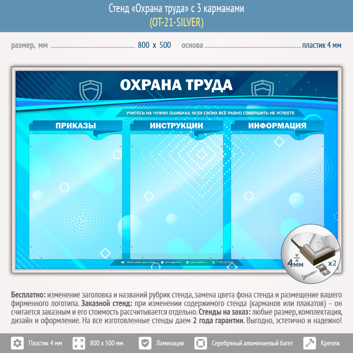 Стенд «Охрана труда» с 3 карманами (OT-21-SILVER) в Щёлково купить