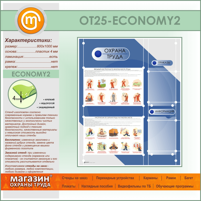 Стенд «Охрана труда» с 2 плоскими карманами (OT-25-ECONOMY2) в Щёлково купить