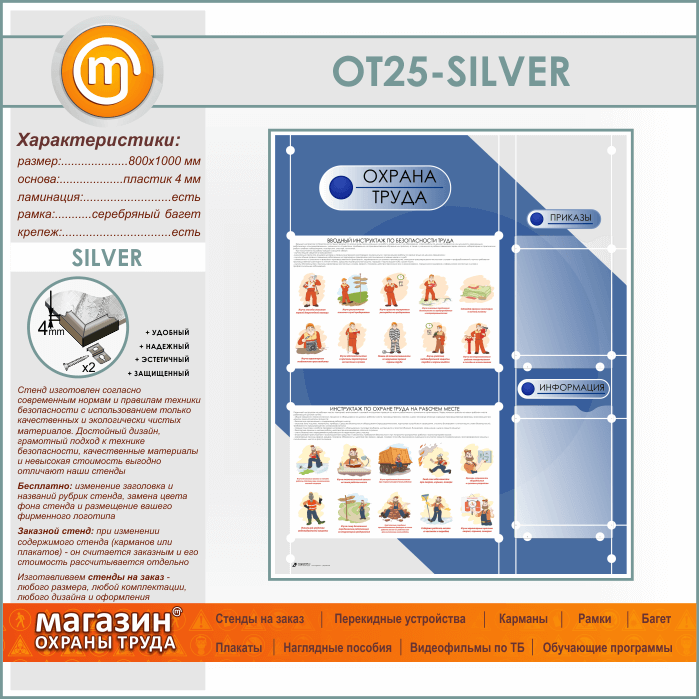 Стенд «Охрана труда» с 2 плоскими карманами (OT-25-SILVER) в Щёлково купить