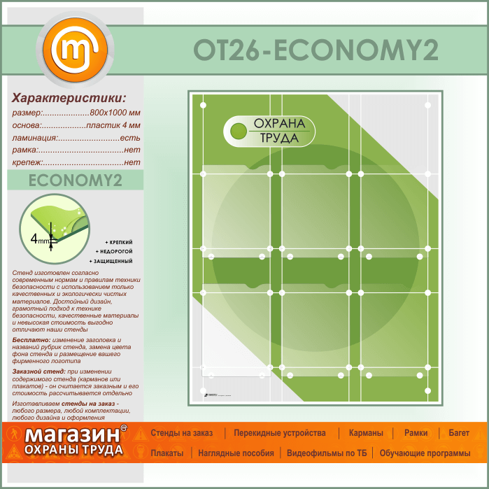 Стенд «Охрана труда» с 6 плоскими карманами (OT-26-ECONOMY2) в Щёлково купить