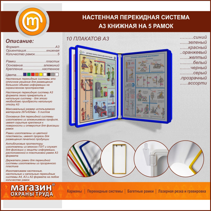 Настенная перекидная система А3 на 5 рамок книжная в Щёлково купить