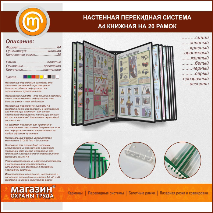 Настенная перекидная система А4 на 20 рамок книжная в Щёлково купить