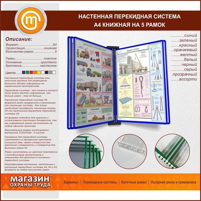 Настенная перекидная система А4 на 5 рамок книжная в Щёлково купить