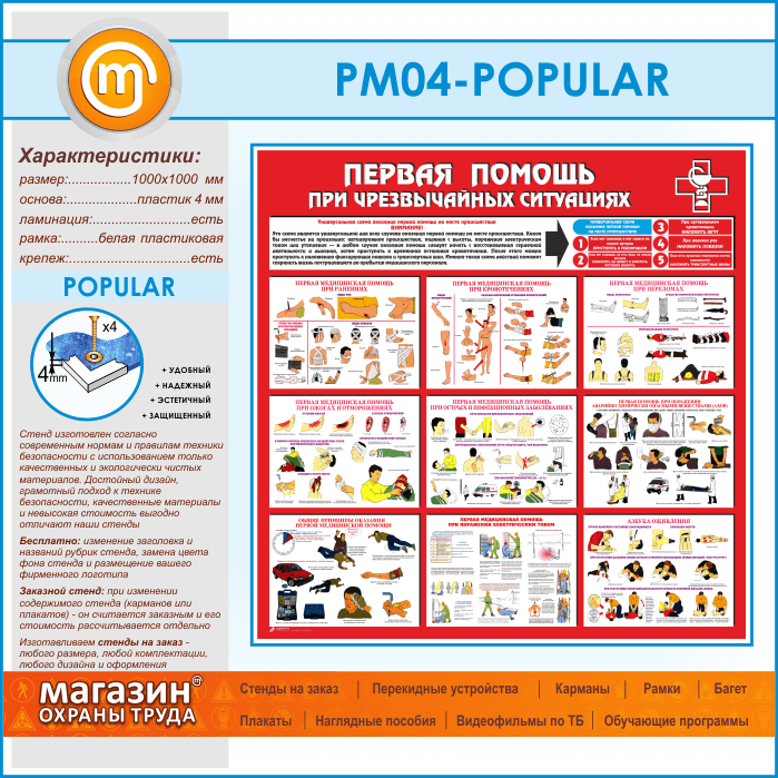 Стенд «Первая помощь при чрезвычайных ситуациях» (PM-04-POPULAR) в Щёлково купить