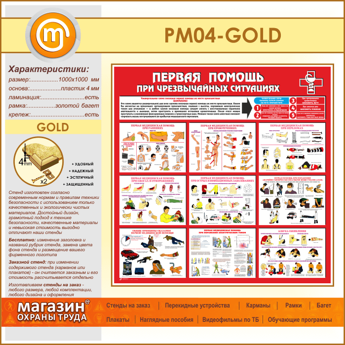 Стенд «Первая помощь при чрезвычайных ситуациях» (PM-04-GOLD) в Щёлково купить