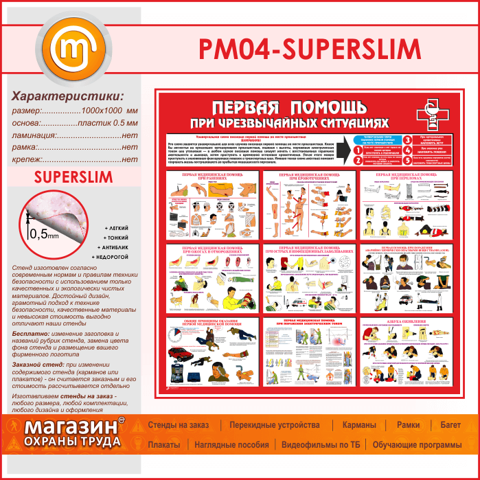 Стенд «Первая помощь при чрезвычайных ситуациях» (PM-04-SUPERSLIM) в Щёлково купить