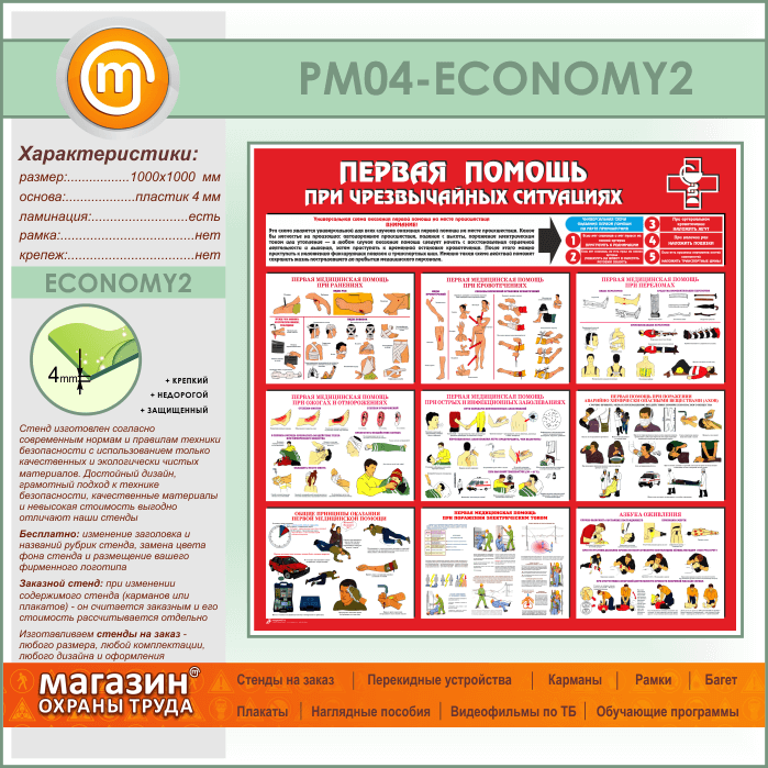 Стенд «Первая помощь при чрезвычайных ситуациях» (PM-04-ECONOMY2) в Щёлково купить