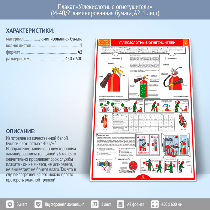 Плакат «Углекислотные огнетушители» (М-40/2, ламинированная бумага, А2, 1 лист) в Щёлково купить
