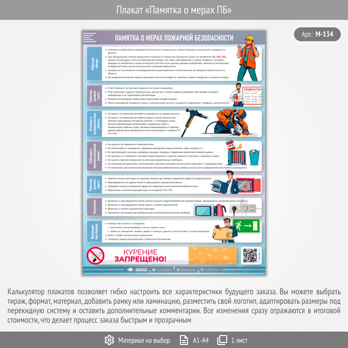 Плакат «Памятка о мерах ПБ» с QR (М-134, 1 лист) в Щёлково купить
