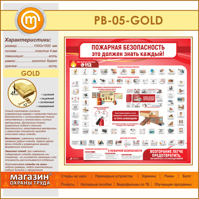 Стенд «Пожарная безопасность. Это должен знать каждый» (PB-05-GOLD) в Щёлково купить