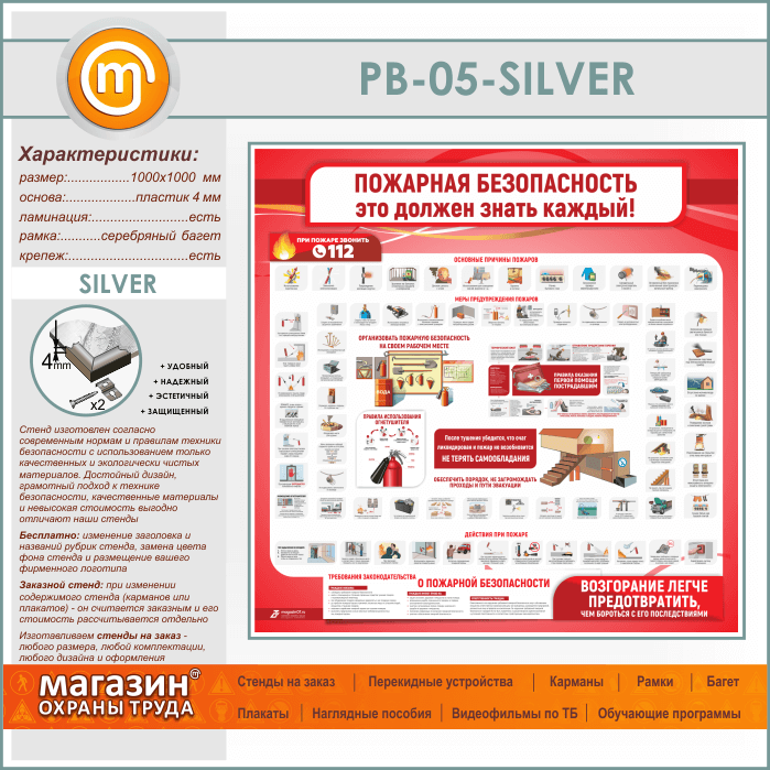 Стенд «Пожарная безопасность. Это должен знать каждый» (PB-05-SILVER) в Щёлково купить