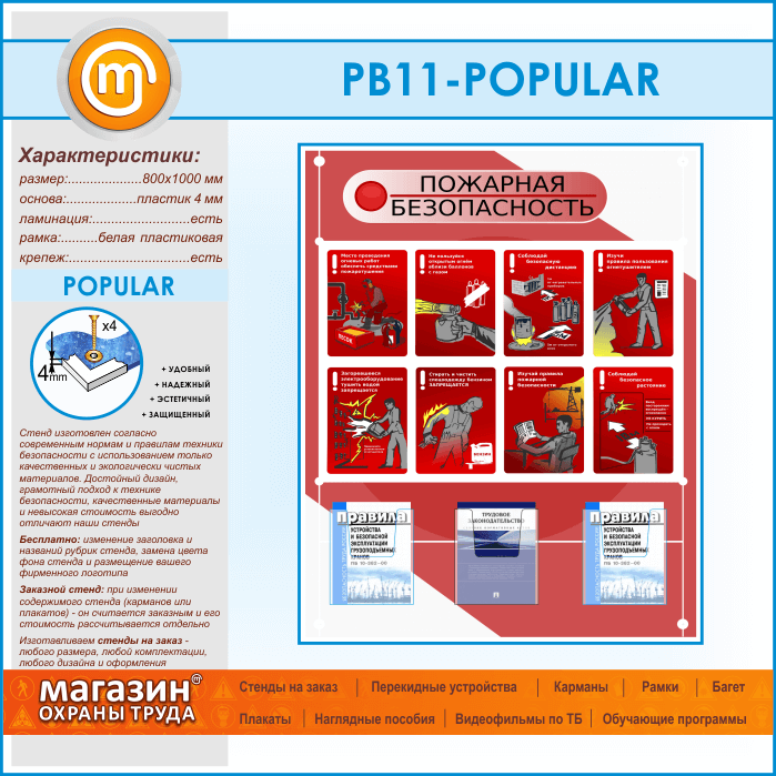Стенд «Стенд пожарная безопасность в строительстве» с 3 объемными карманами (PB-11-POPULAR) в Щёлково купить